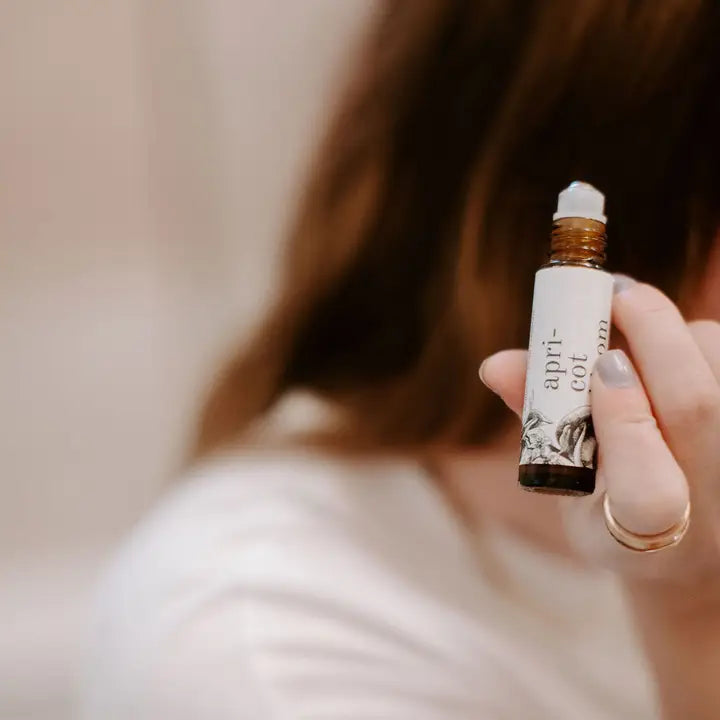 apricot perfume, floral roll-on perfume, pear fragrance oil, jasmine scent, clean fragrance, handmade perfume, natural scent, travel perfume, giftable fragrance, made in usa, valentines day, valentine gifts, valentines day gifts, gifts, self care, wellness, apothecary, beauty