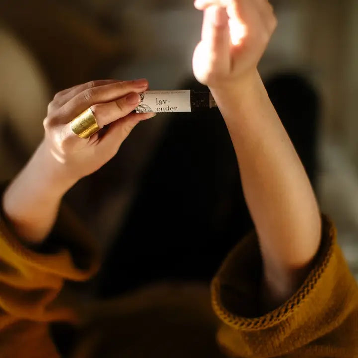 Give it a little shake to mix the fragrance, then roll on pulse points like wrists, neck, and inside of the elbows.