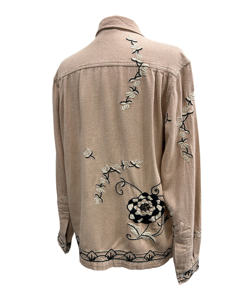 Bode Size S/M Dandelion Embroidered Silk Shirt