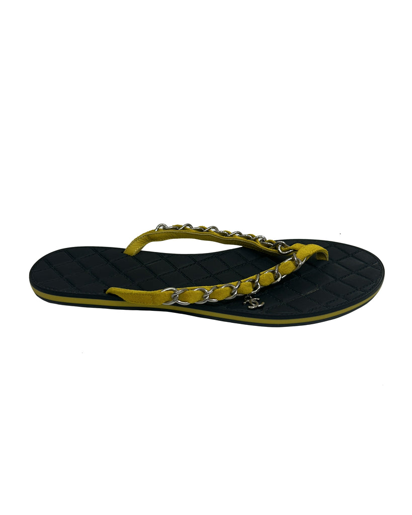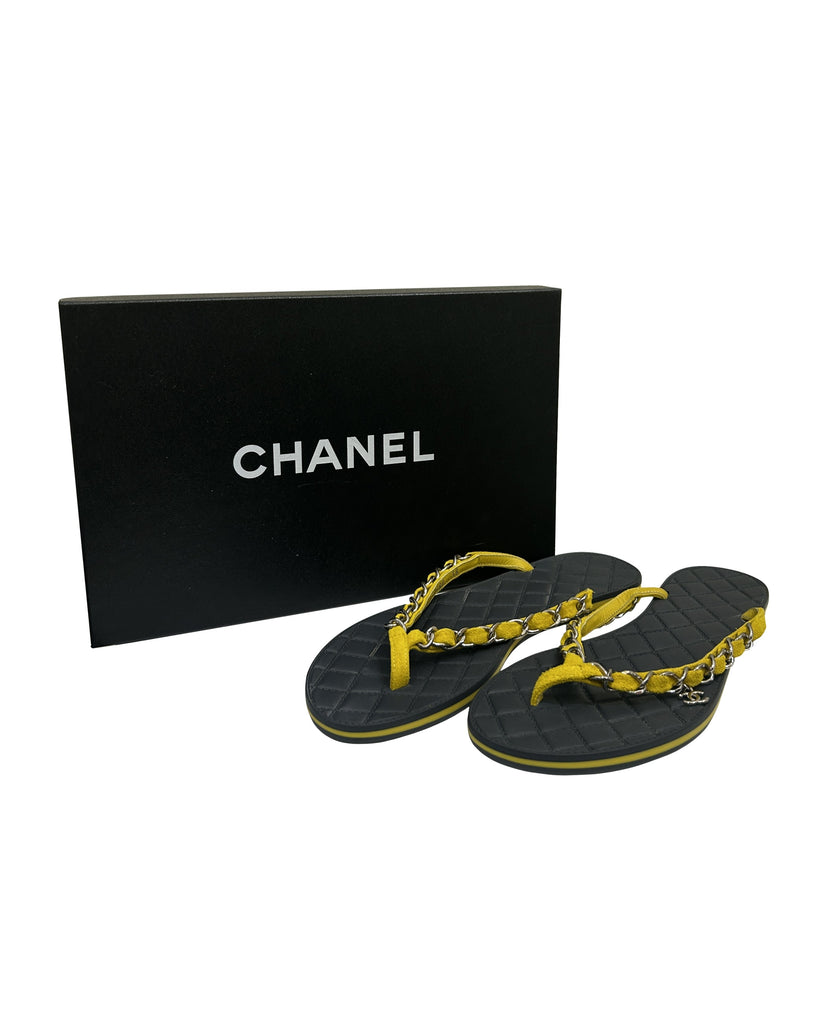Chanel Size 38 Suede Chain CC Thong Sandals